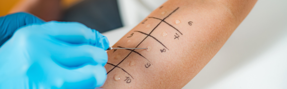 Pequenas gotinhas são colocadas na pele. Se ficar vermelha, é sinal de alergia.